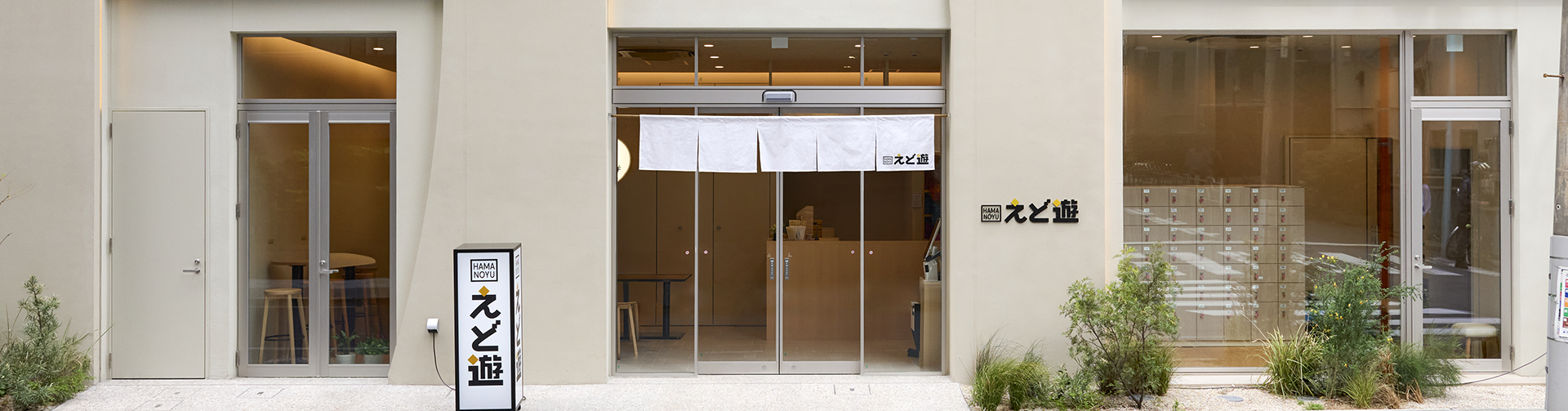 白銀のひときわ大きな暖簾が、新しい江戸遊の入口です。
