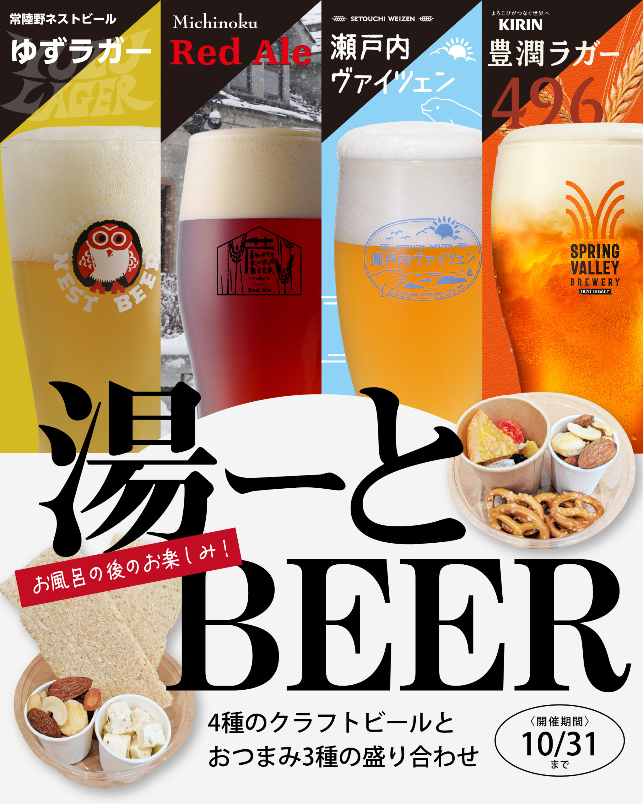 湯上がりの心地よさに浸りながら楽しむ一杯としてはもちろん、お風呂に入らない方も気軽にお過ごしいただけます。