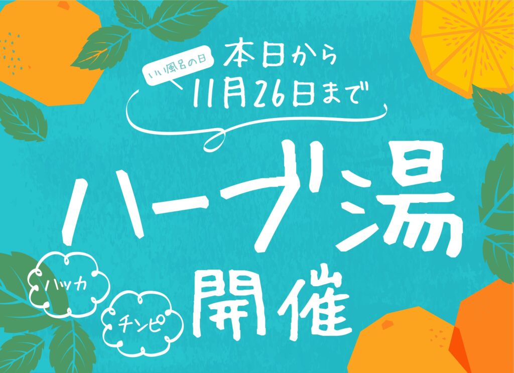 11/22(土)~11/26(水)”いい風呂の日” までの5日間、期間限定ハーブ湯を開催します!!