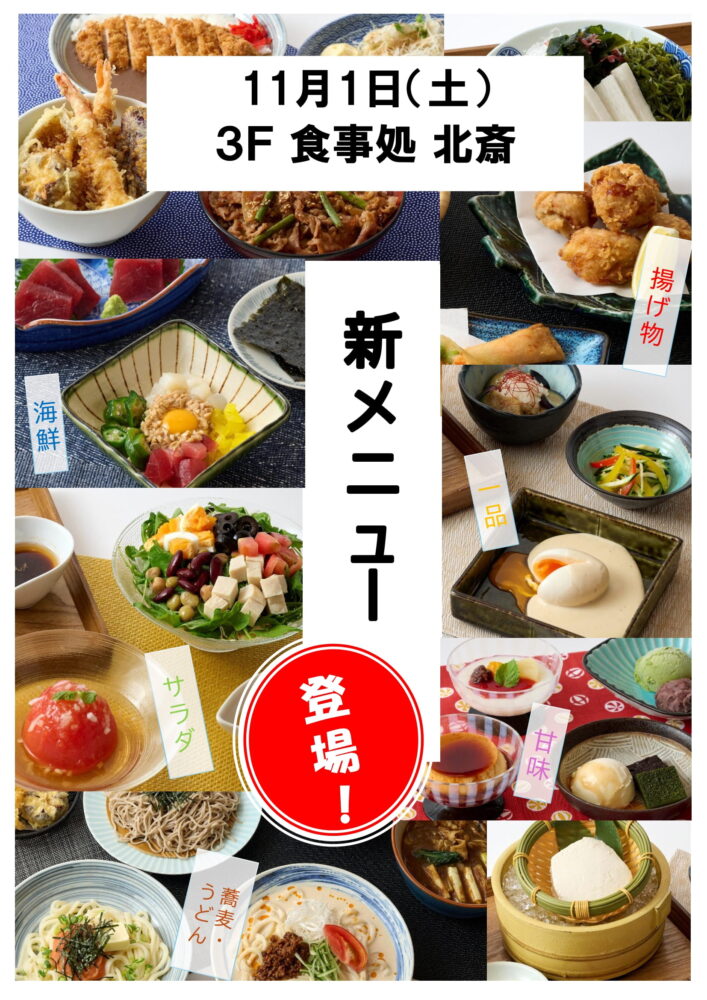 江戸名物のニ八蕎麦や揚げたての天婦羅をつまみ、楽しむ食事処「北斎」。和風の甘味やドリンクを用意したCafe「応為」。食の満足を提供できるのも江戸遊ならでは、です。