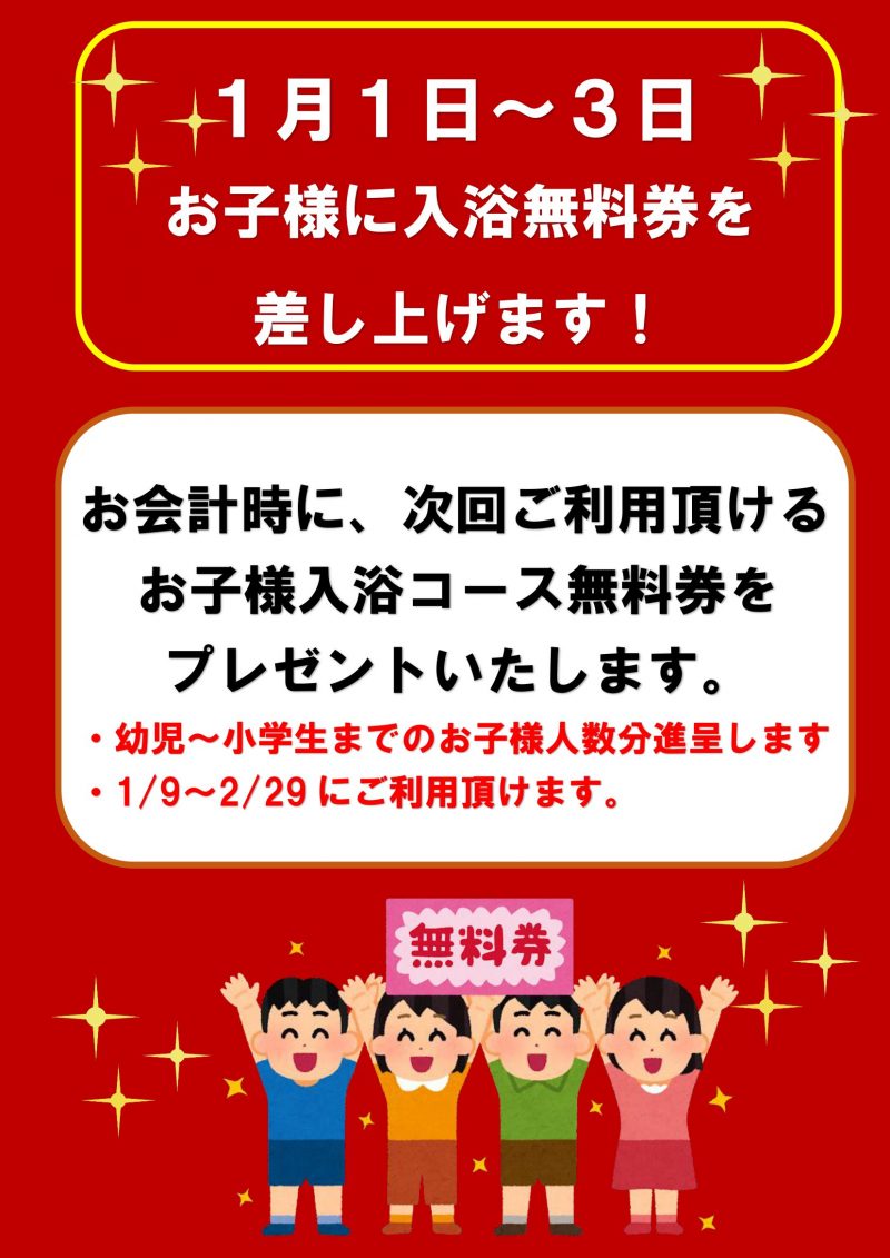 ②1/1(祝)~1/3(水)お子様に次回入浴無料券を差し上げます🙌