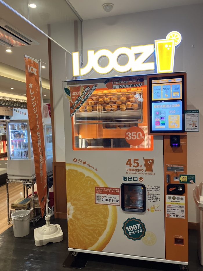 江戸遊の1階ロビーに今話題の大人気の生絞りオレンジジュースの自販機が登場しました🍊 サウナや温泉のあとにフレッシュな1杯をお召し上がりください♨ お求めは現金の他電子マネーにも対応しています☺ インターパークにお買い物にきたらぜひお立ち寄りください!