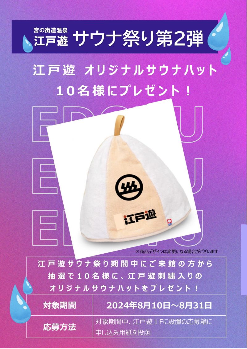 ◇抽選で10名様に江戸遊オリジナルサウナハットプレゼント🎁 店頭でどなたでもご応募いただけます