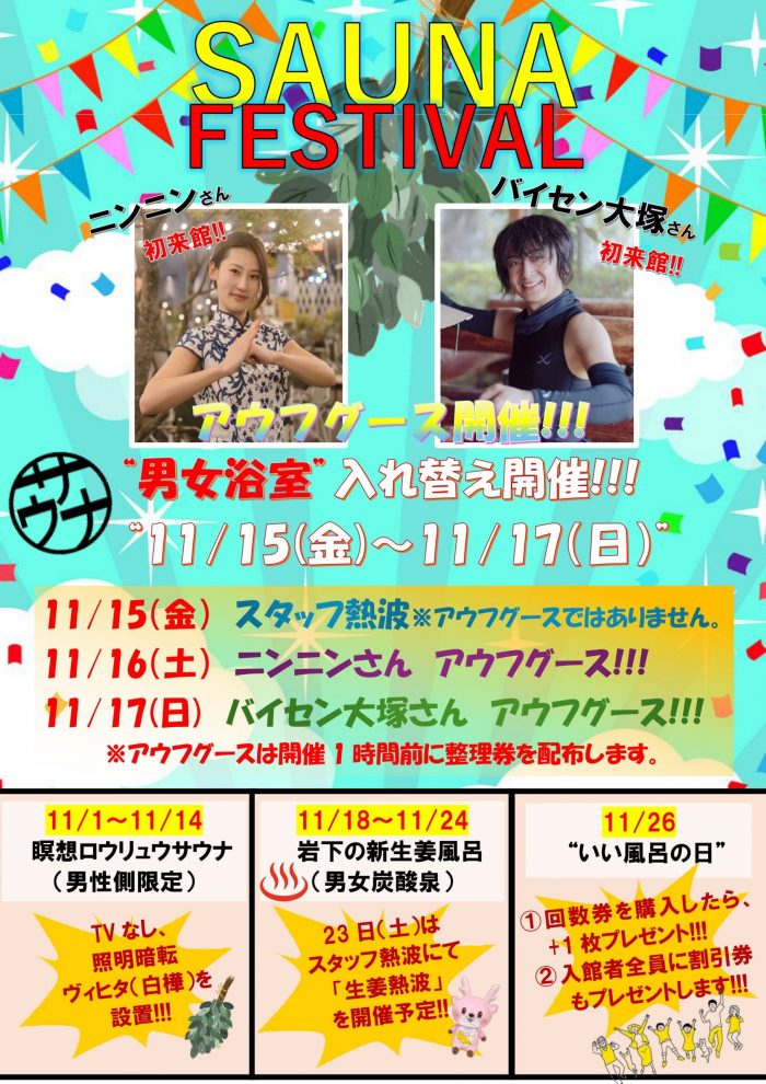 11/15(金)~11/17(日)は「SAUNA FESTIVAL」イベントを開催します✨