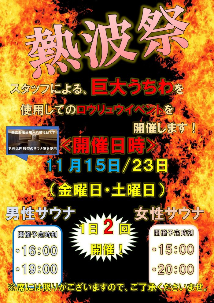 11/23(土祝)はスタッフ熱波祭開催日です🔥