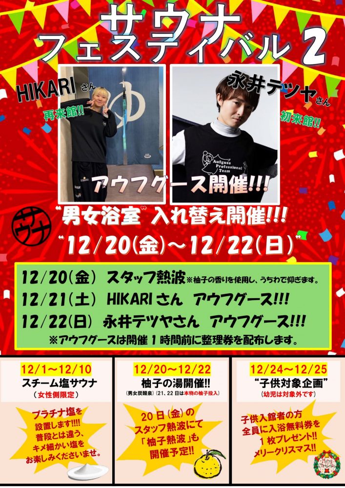 12/20(金)~12/22(日) サウナフェスティバル開催🔥
