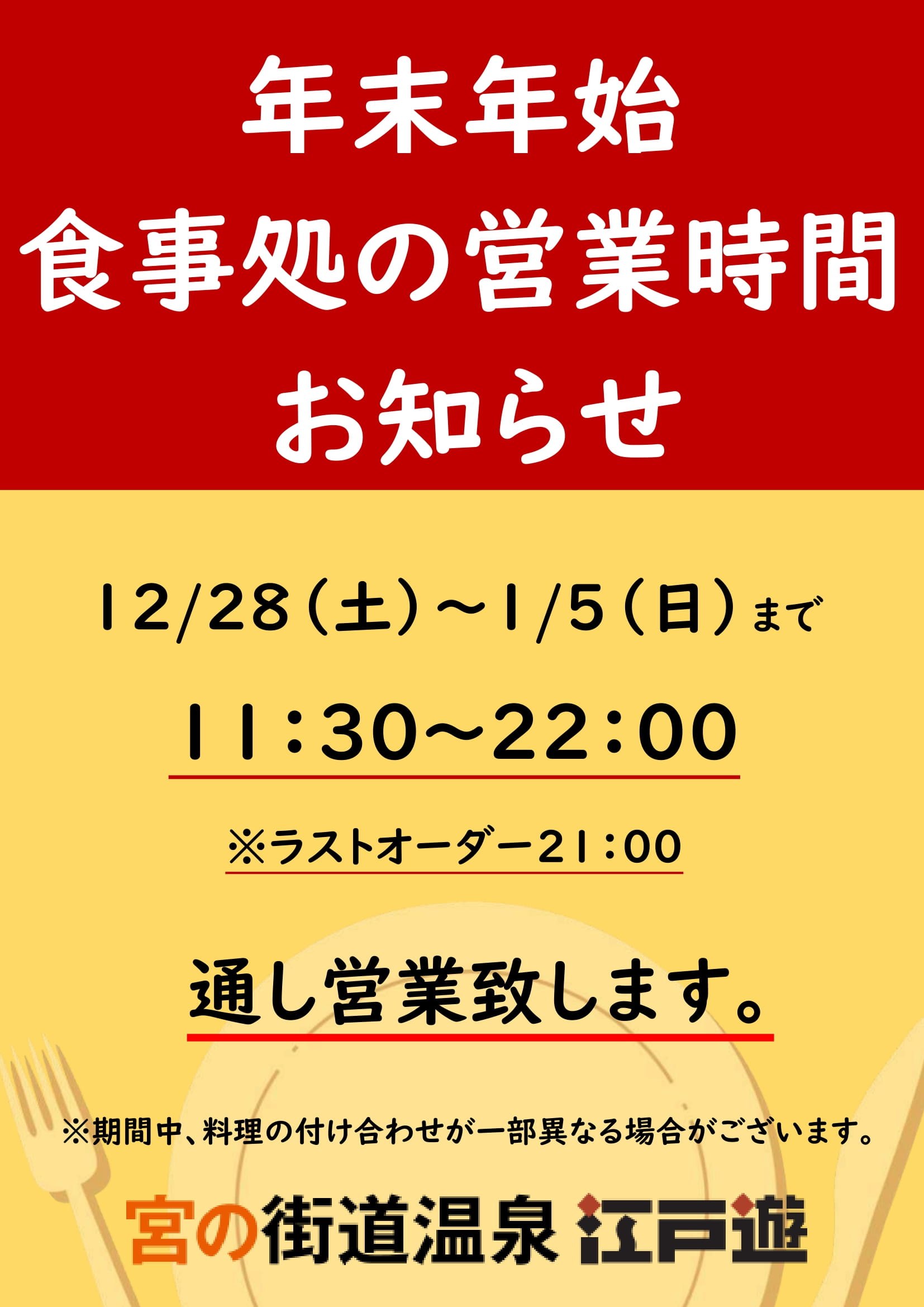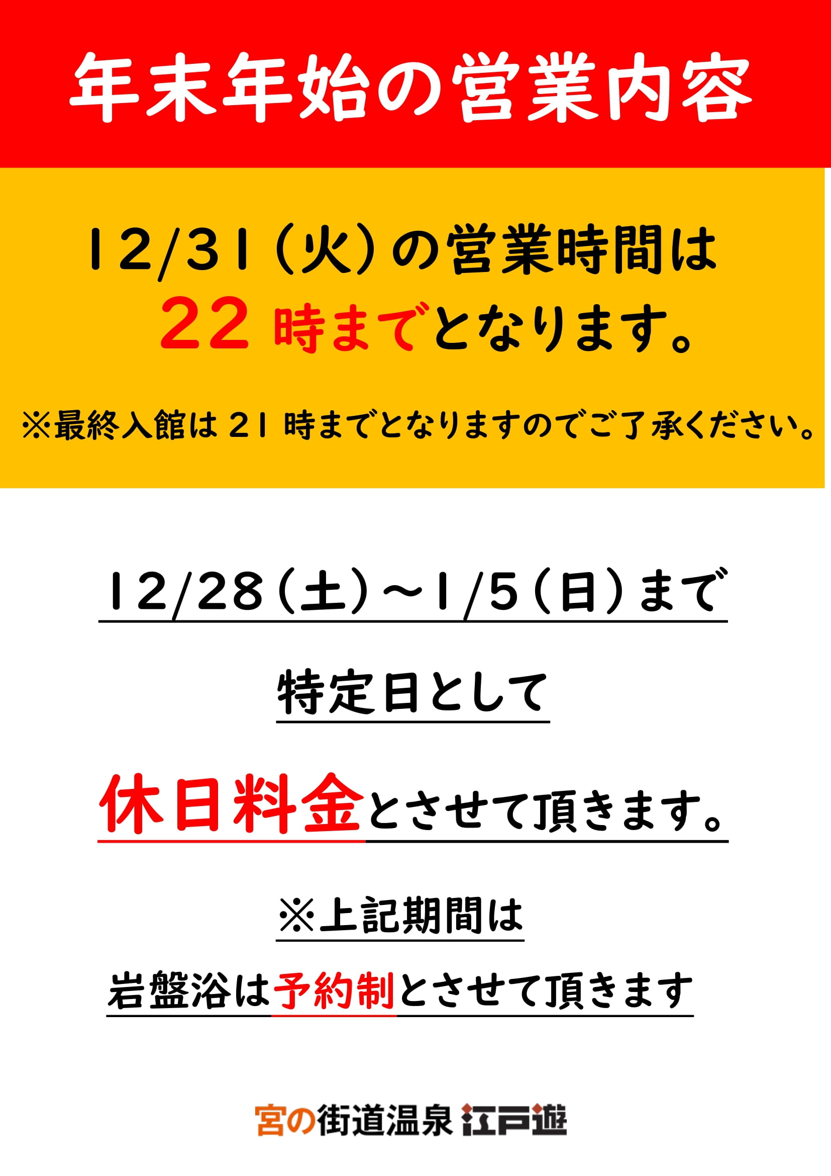 ◇12/31(火)大晦日は、22:00閉店とさせていただきます。(最終入館は21:00となります)