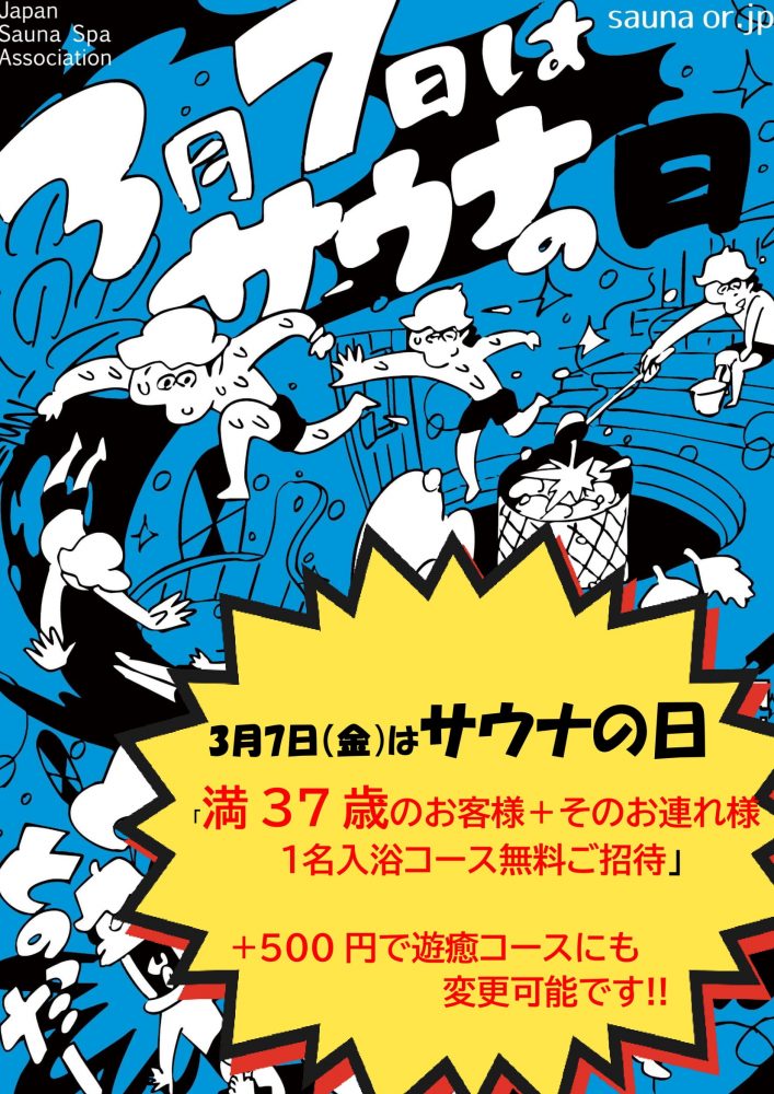 3/7(金)当日に満37歳の方を対象に、入浴コースを無料でご使用いただけます🙌