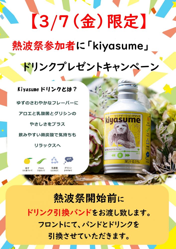 3/7(金)熱波イベント参加のお客様にサウナドリンクプレゼント🎁