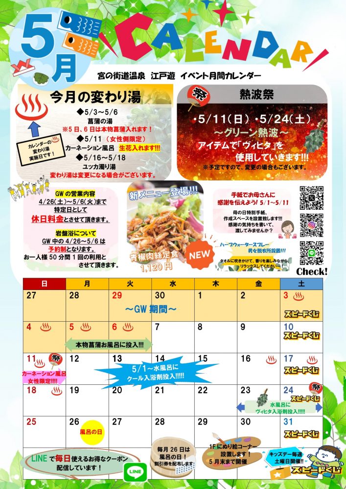 5/5・5/6の2日間は本物の菖蒲をお湯に浮かべます。端午の節句といえばしょうぶ湯!!