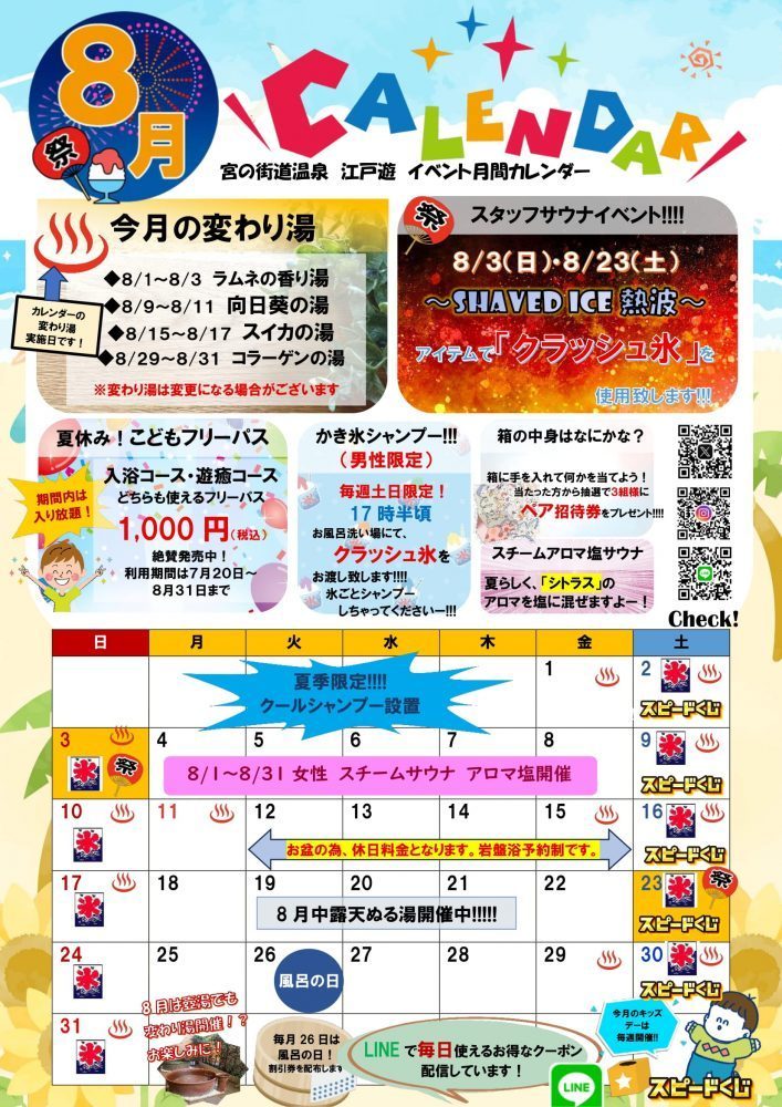 夏も真っ盛り!江戸遊の8月イベントカレンダーです🌞