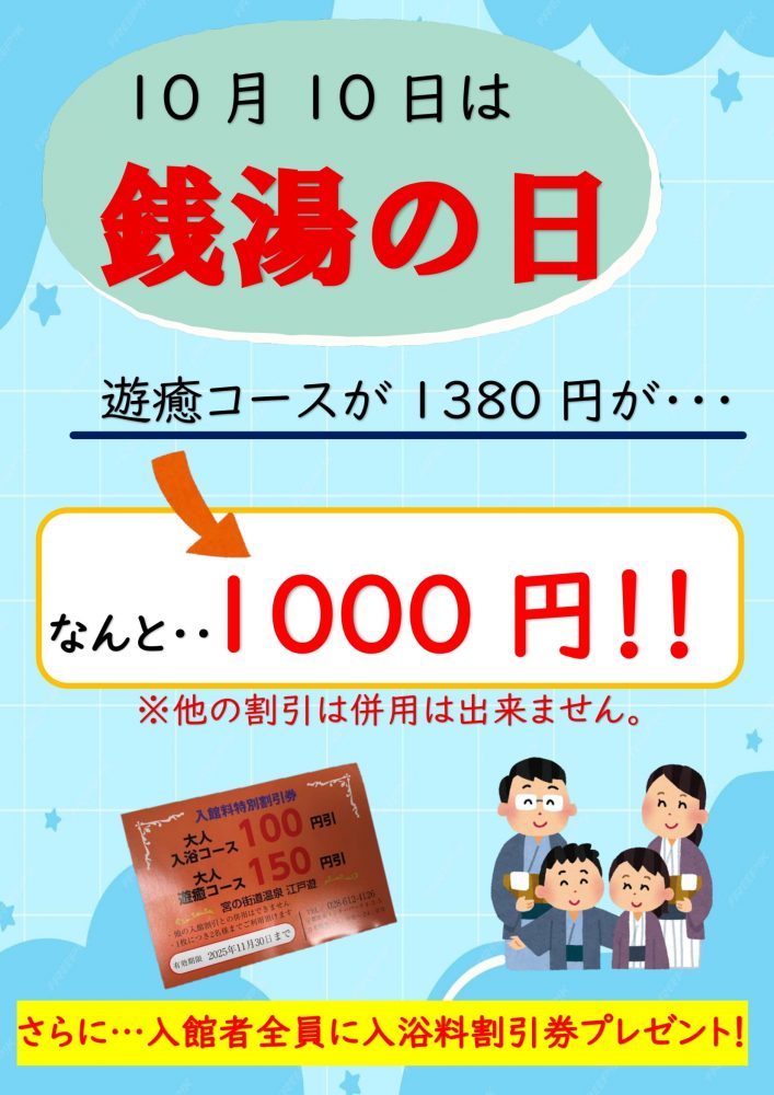 江戸遊では、せんとうの日キャンペーンとして、当日ご入館のお客様に、