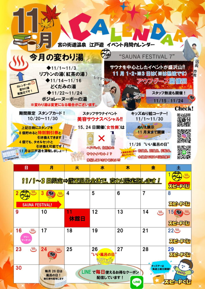 お楽しみに! 11月も江戸遊でお待ちしています♨