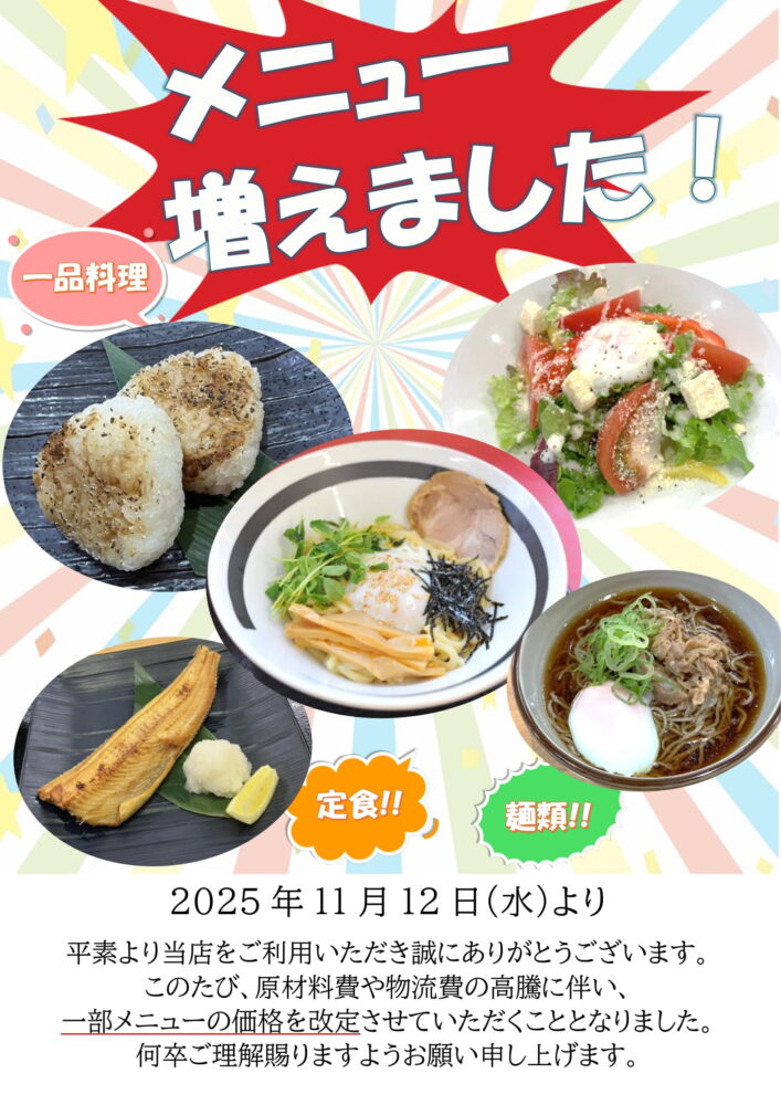 11/12(水)お食事処グランドメニューリニューアル🍽