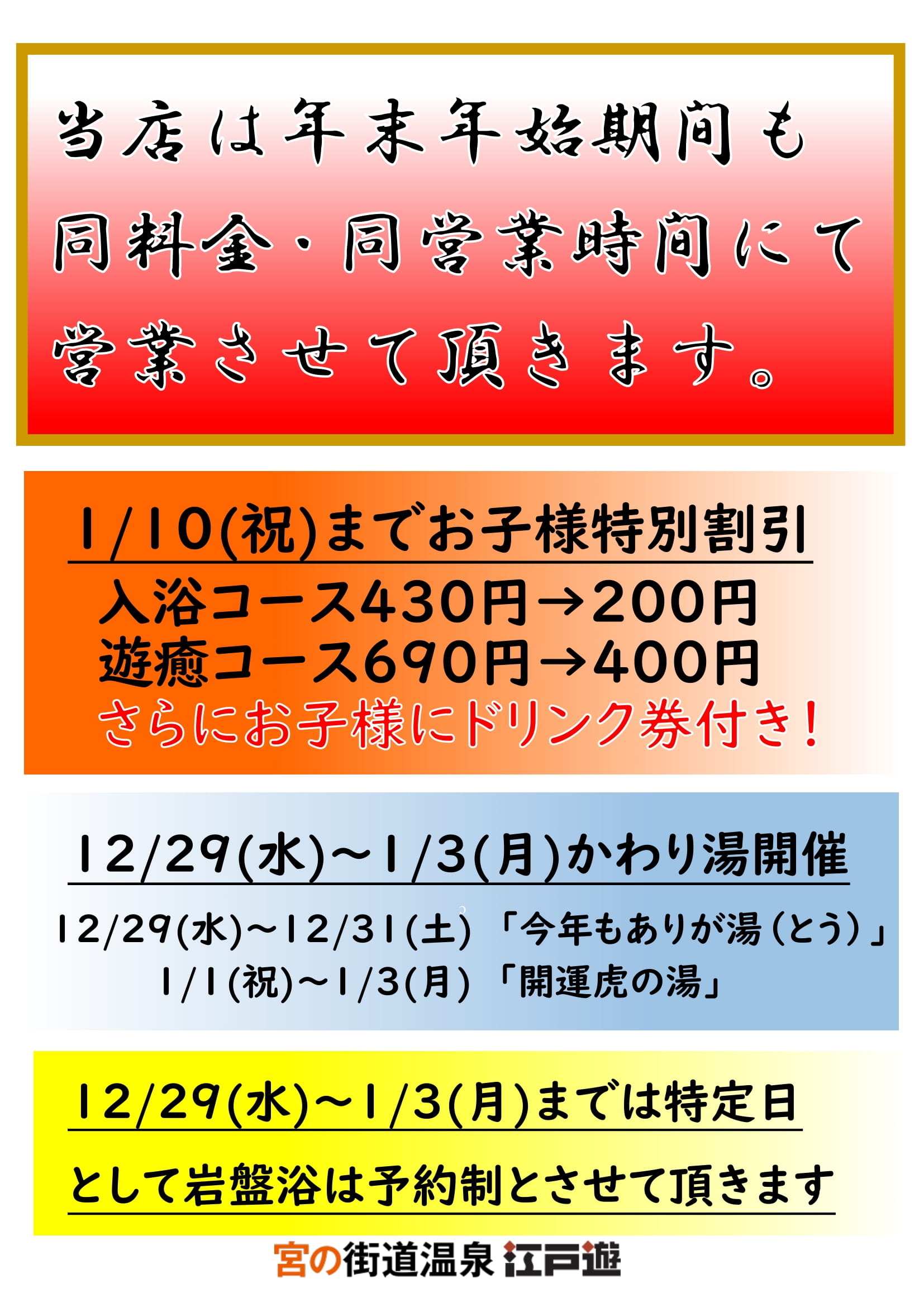 🎄年末年始の営業の内容とイベントのお知らせ🎍