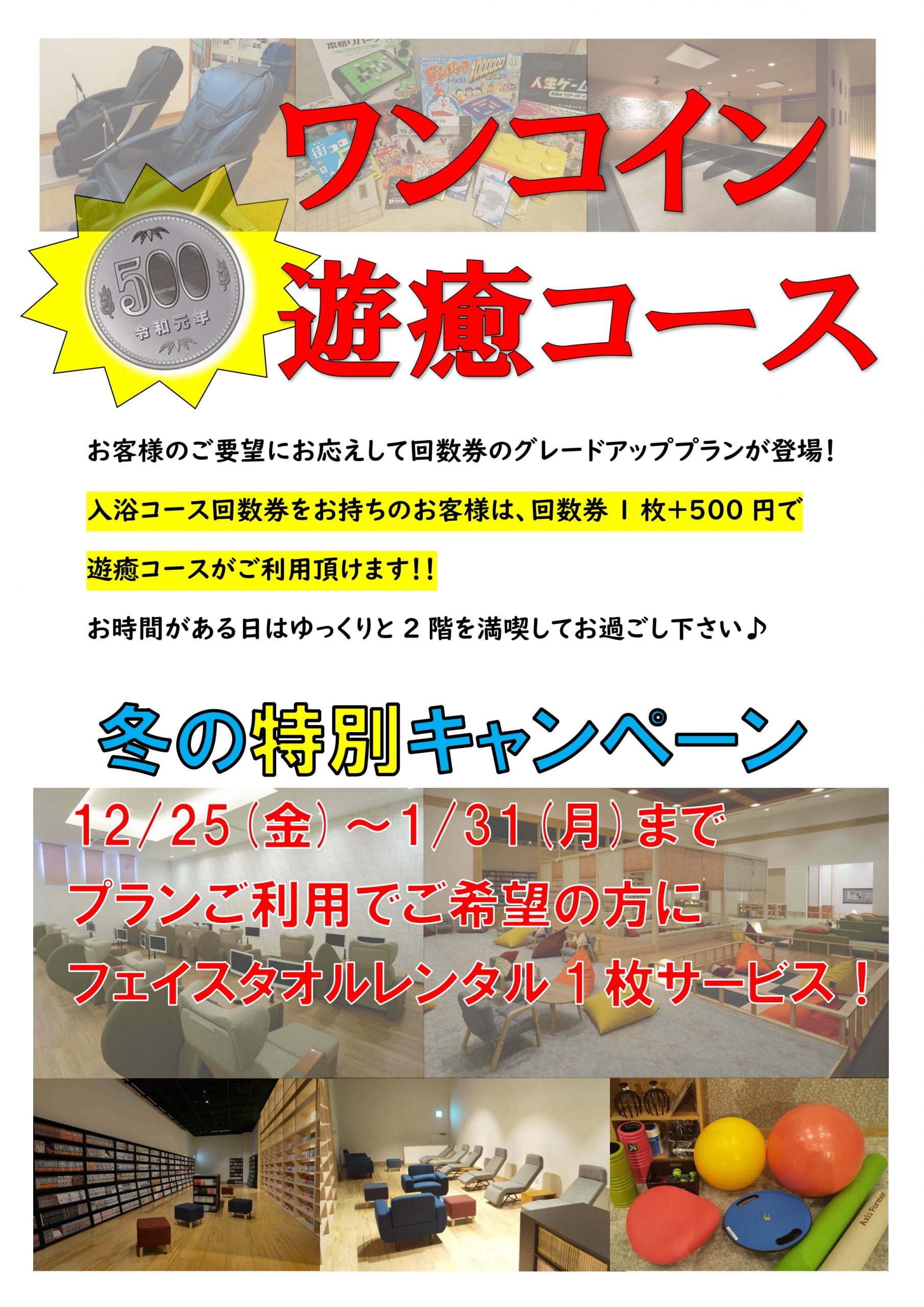 ワンコイン遊癒コースでグレードアップをご利用のお客様に、