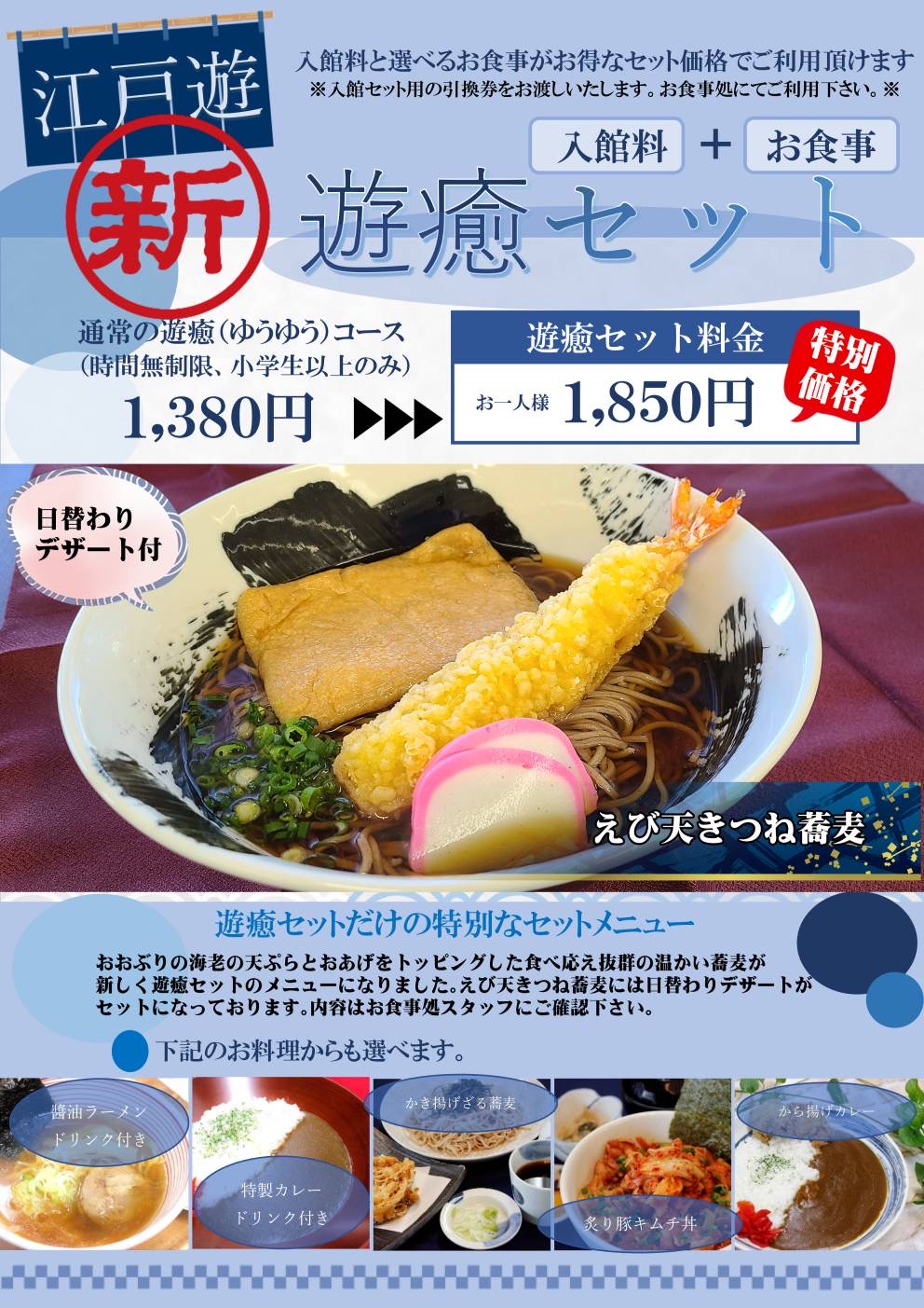 通常1,380円の遊癒コースにお食事付きで1,850円と大変お得です🙌