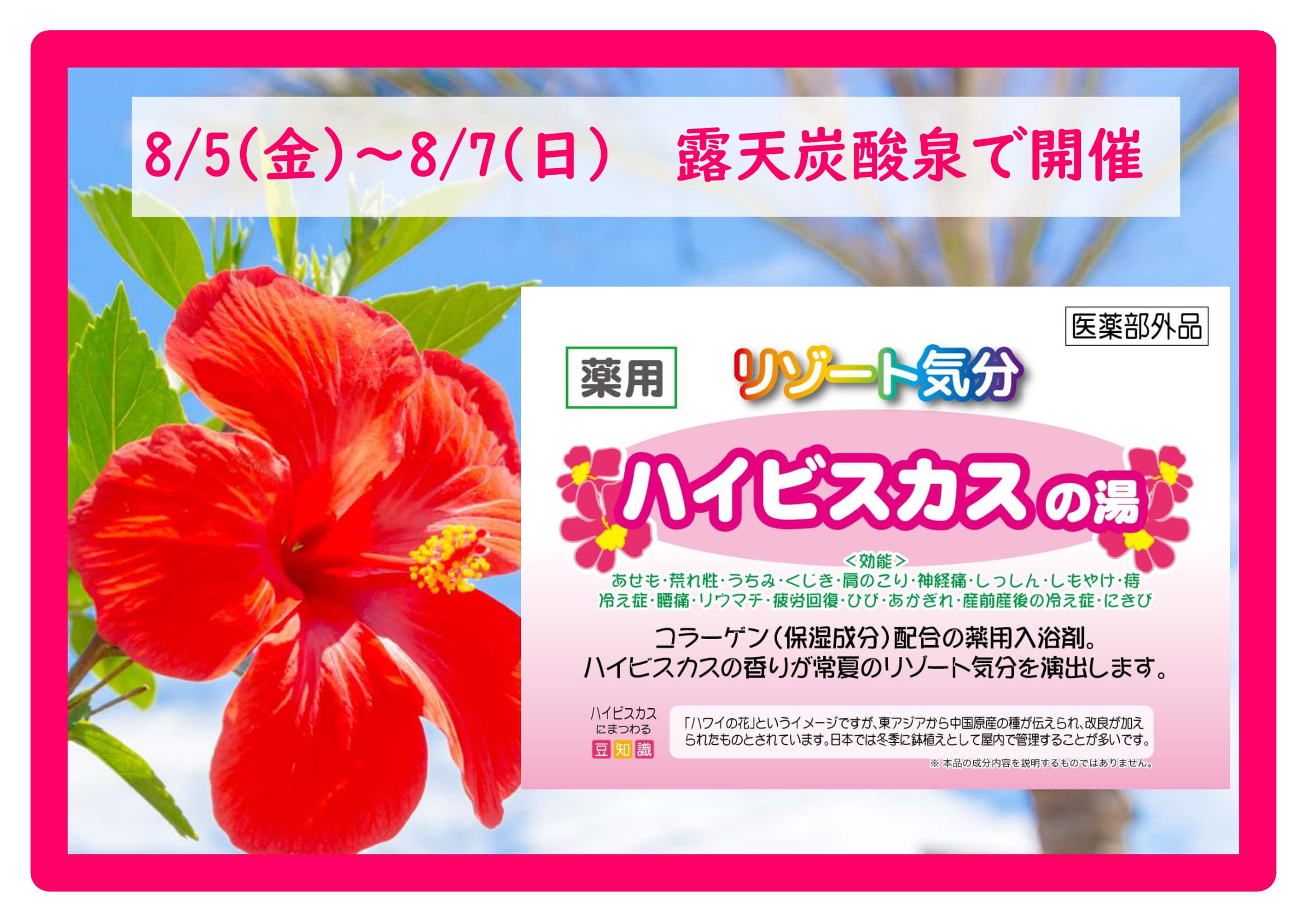 8/5(金)~8/7(日)はかわり湯「ハイビスカスの湯」開催🌺