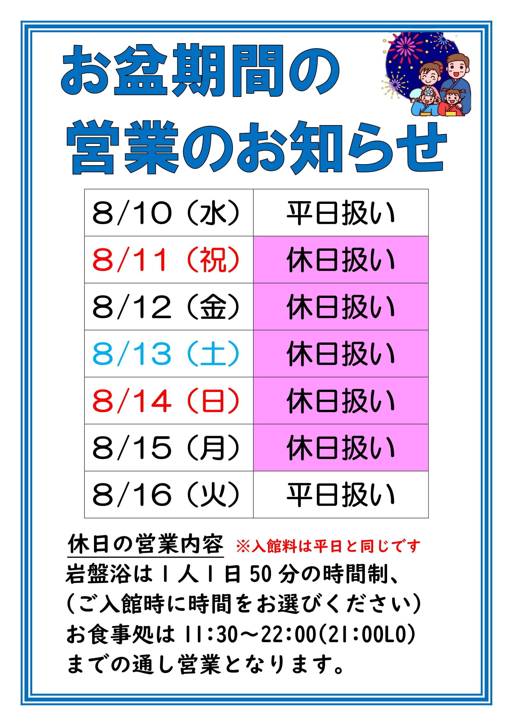 お盆期間の営業内容のお知らせ