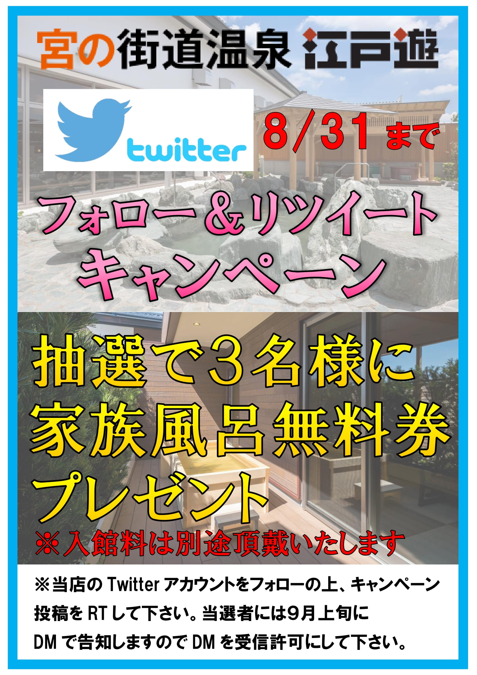 Twitterフォロー&RTキャンペーン第2弾 家族風呂無料券が当たる!