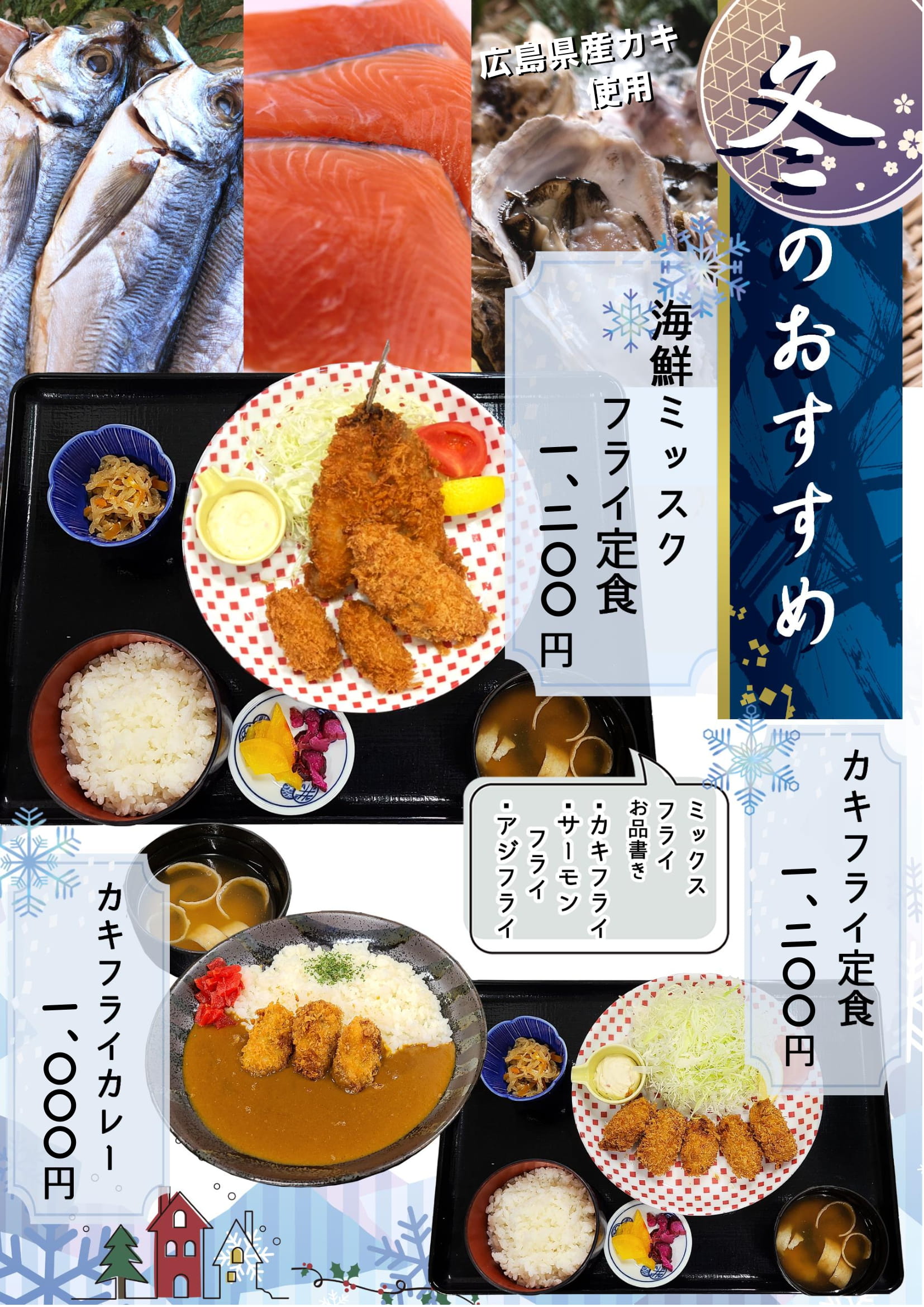 まだまだ人気のカキフライ定食・アジフライ定食・単品アジフライもご用意しています✨