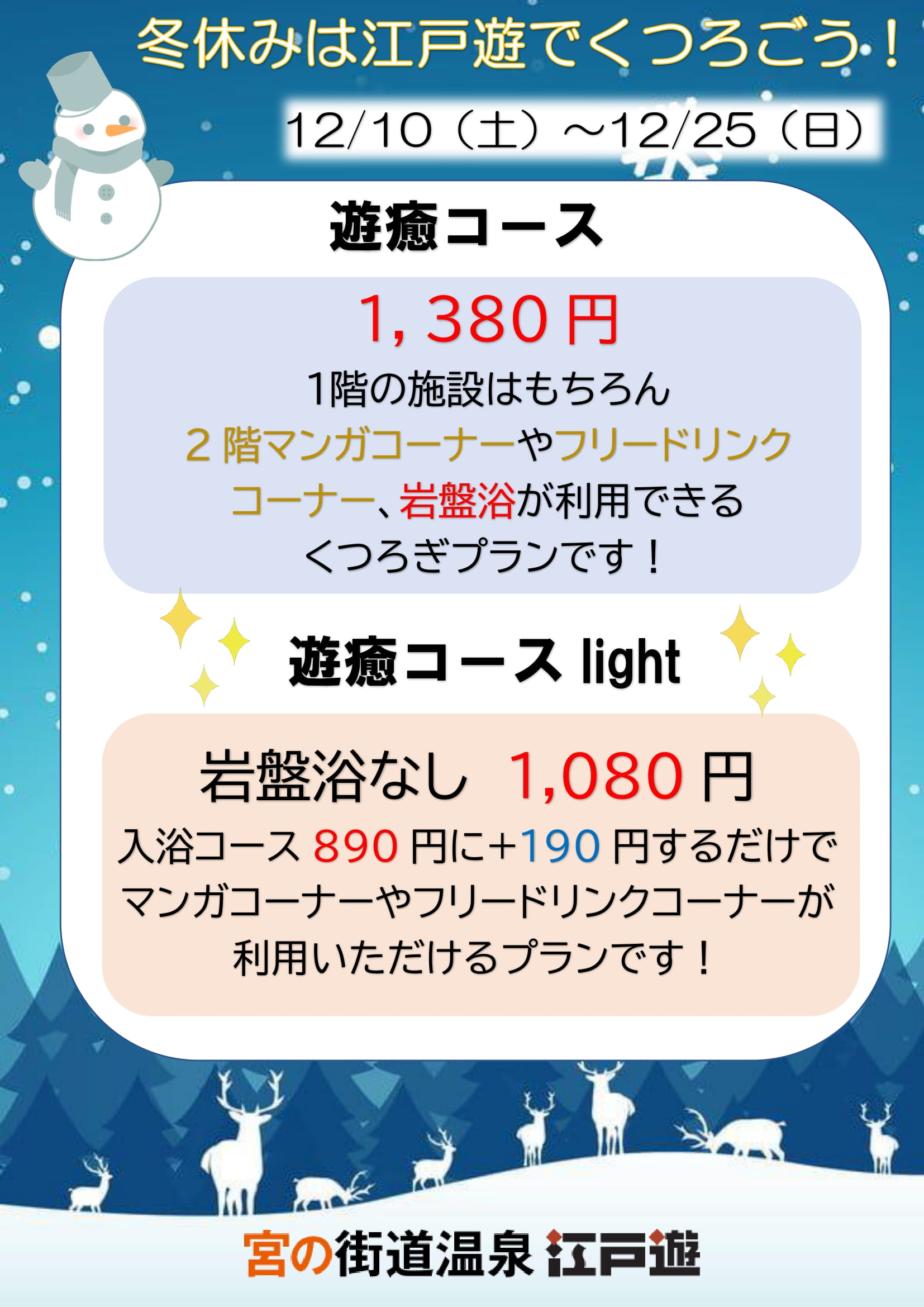 大人気の遊癒コースに12/10(土)~12/25(日)限定のお手軽コースが登場です✨