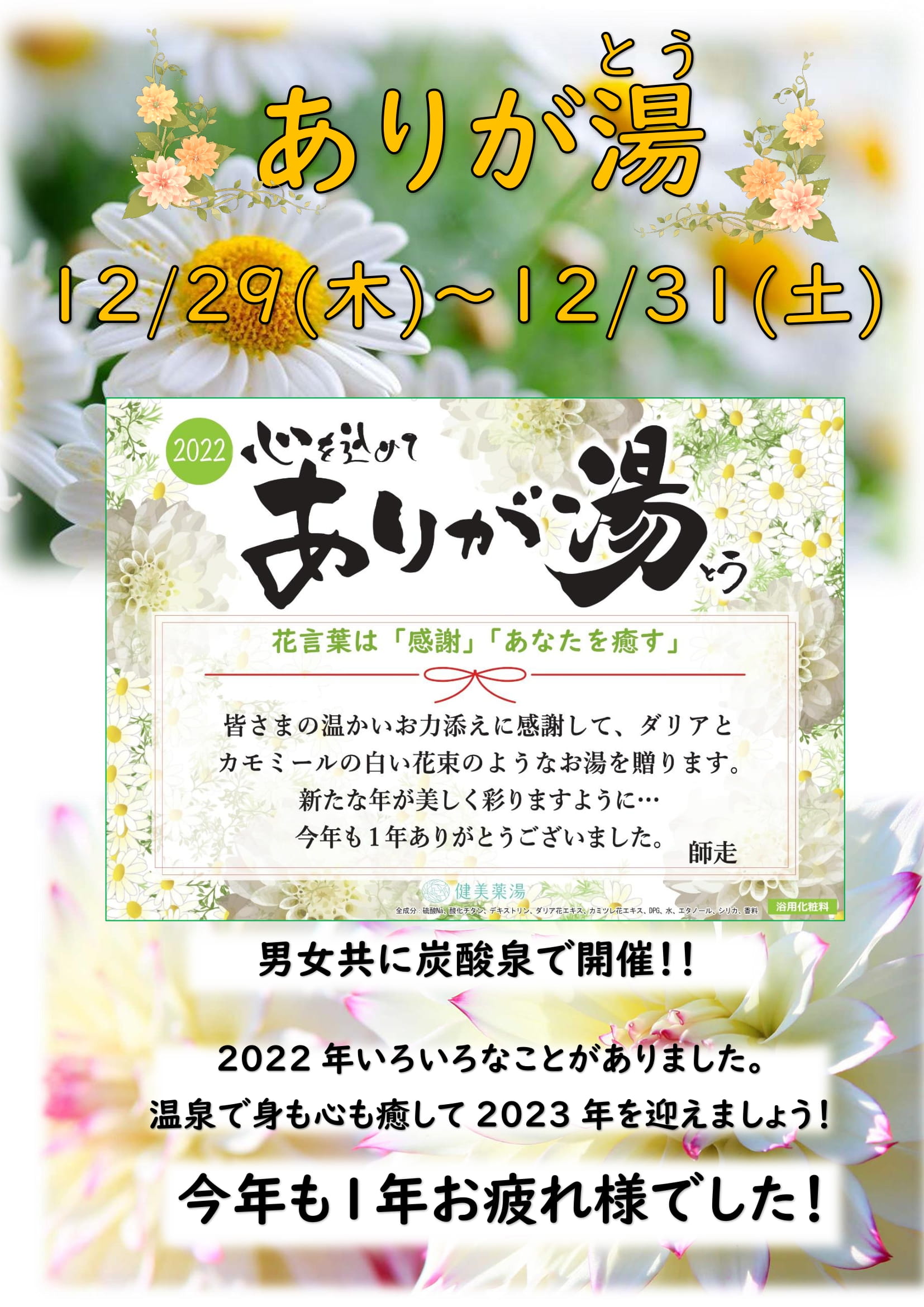 12/29(木)~12/31(土)年末年始かわり湯①「ありが湯」