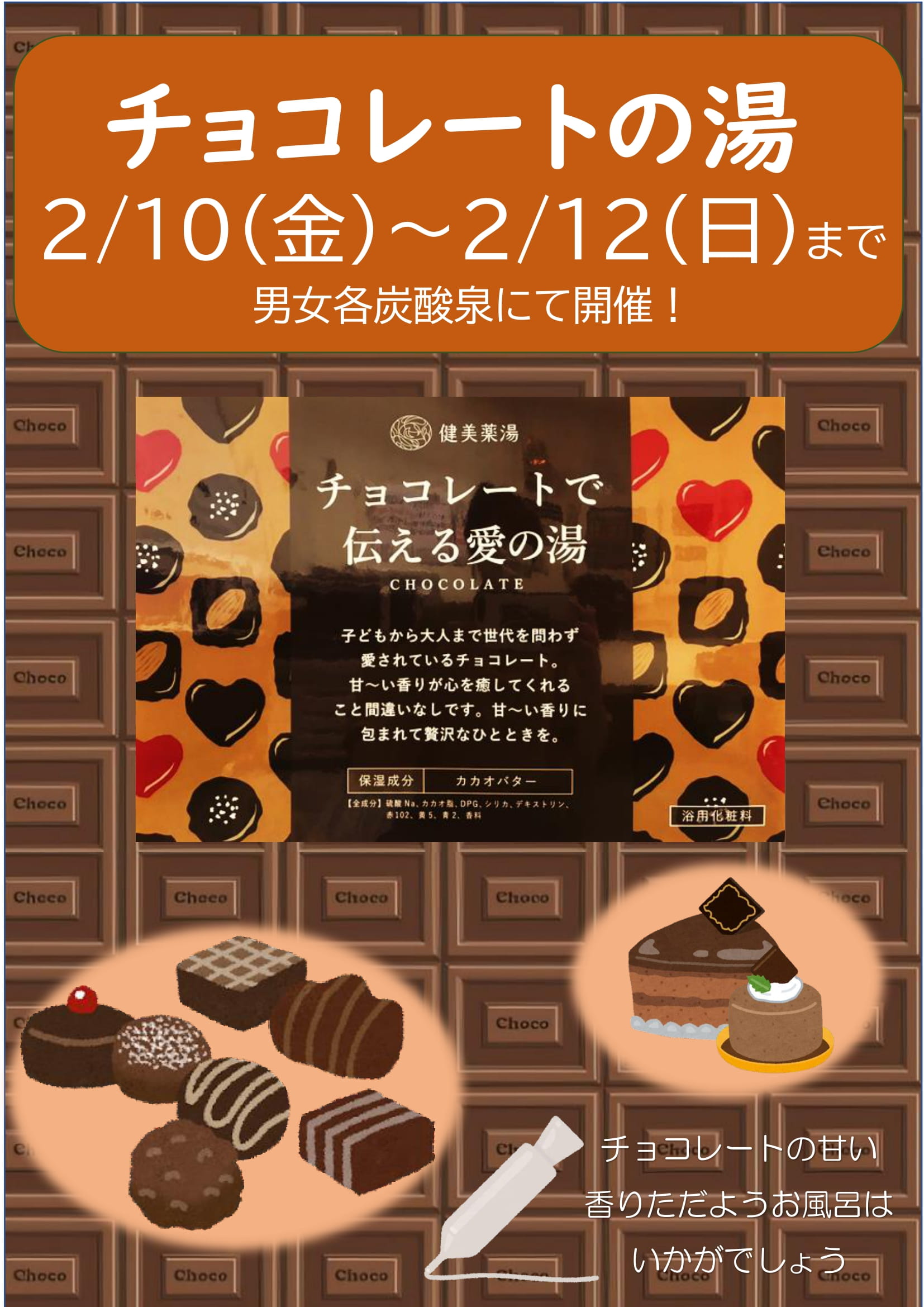 2/10(金)~2/12(日)♨かわり湯「チョコレートの湯」開催🍫