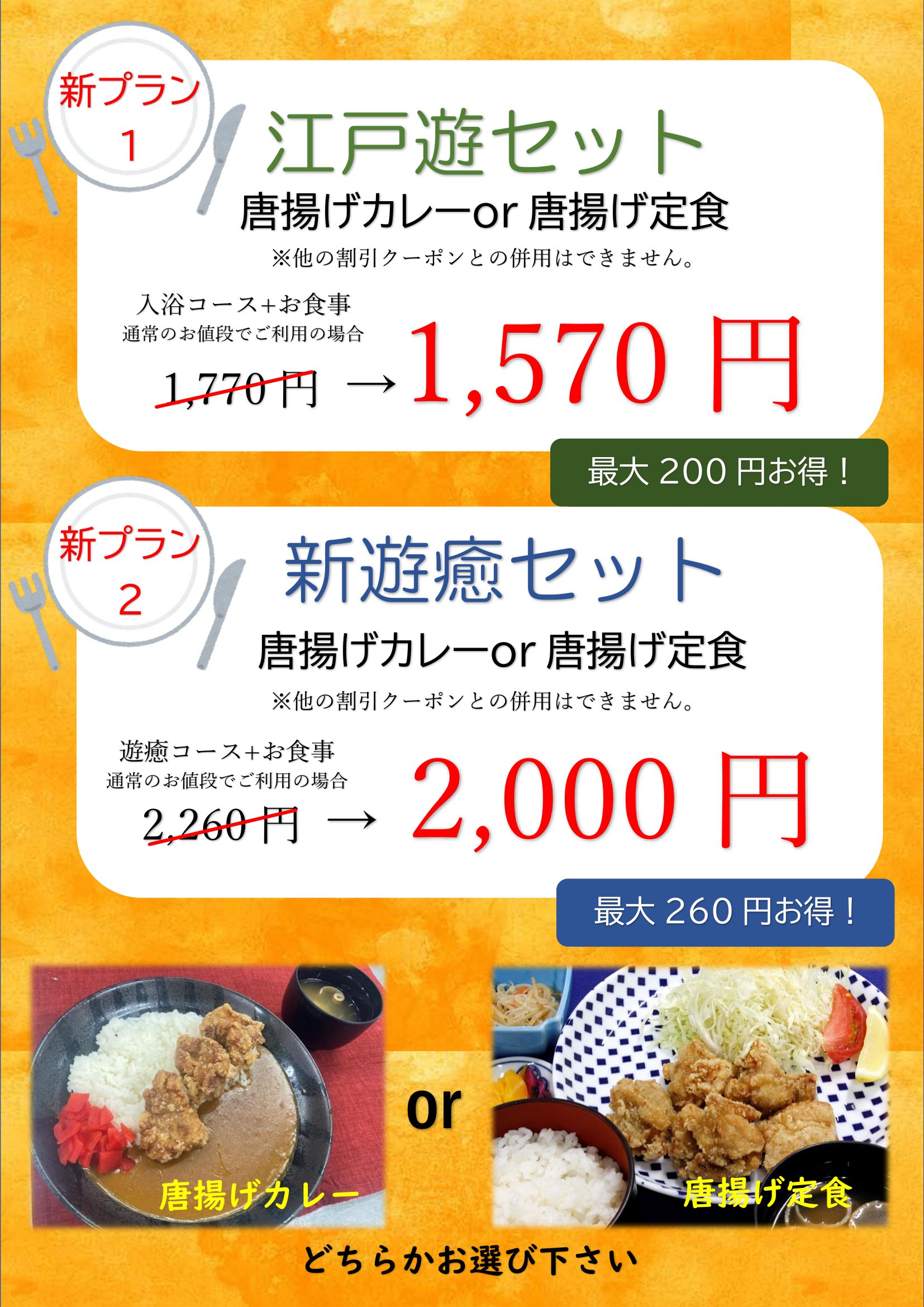入浴コース+お食事 1770円→1550円
