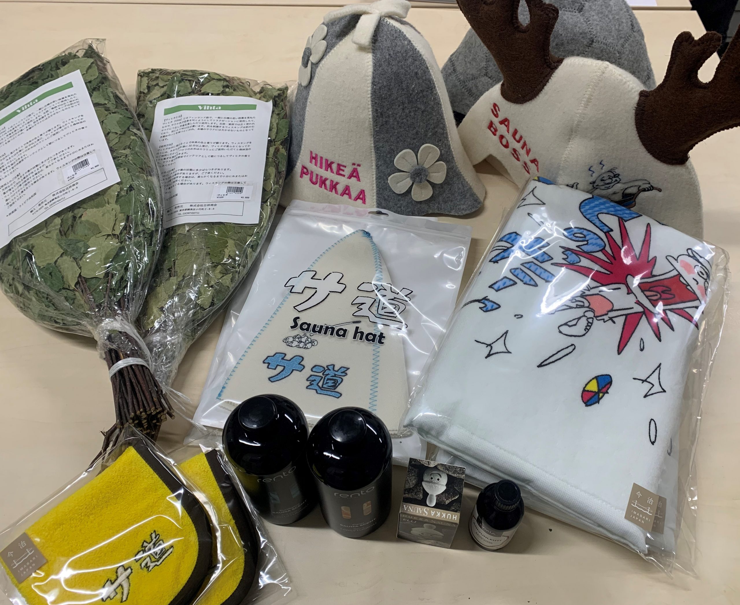 「サ道」のグッズやフィンランド製サウナハット、アロマオイル、ヴィヒタなど多数ご用意しました。