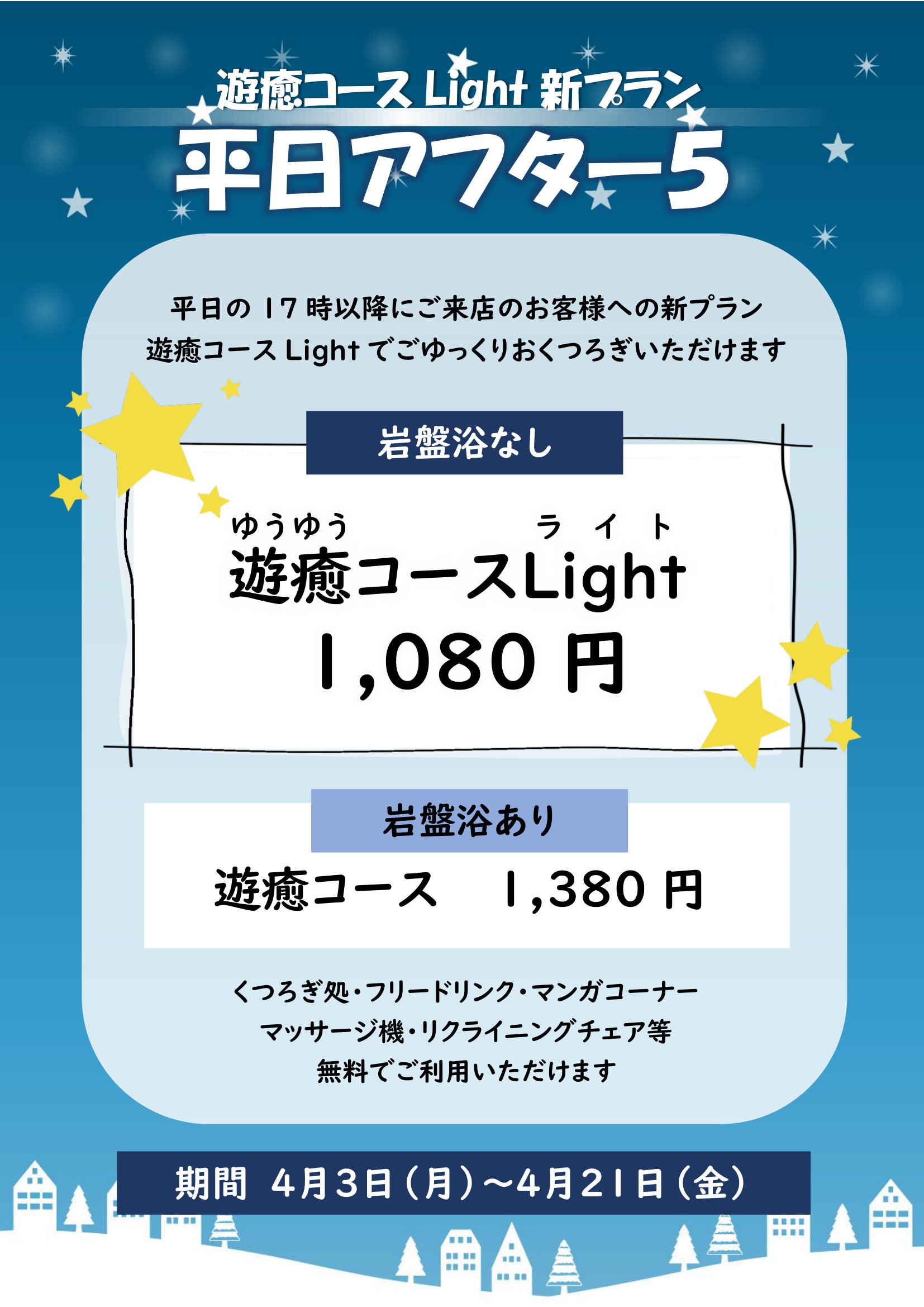 期間限定「平日アフター5遊癒コースLight」登場🌙