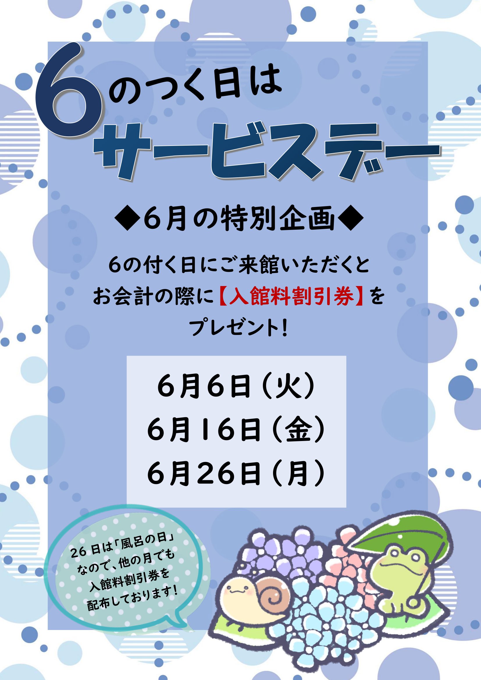 さらに、6月はサービスデーを拡大して6/6(火)6/16(金)6/26(月)の3日間開催します🙌
