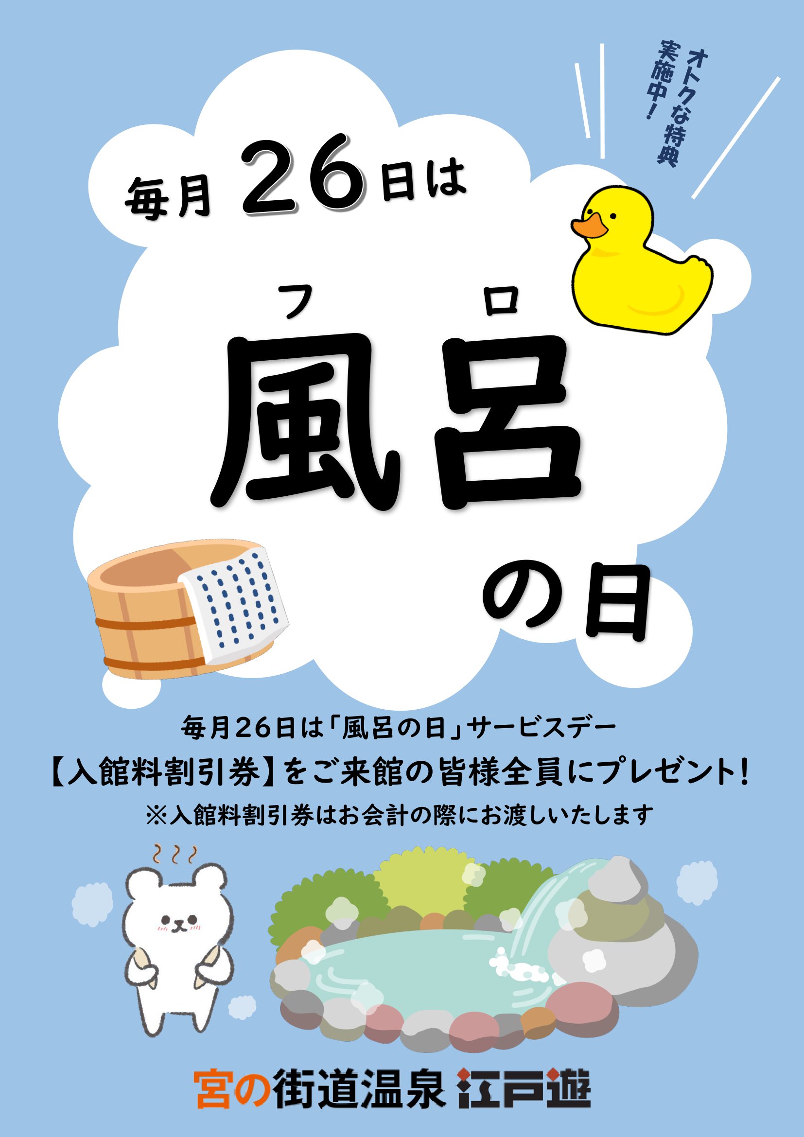 毎月26日は江戸遊の「ふろの日」サービスデーです♨