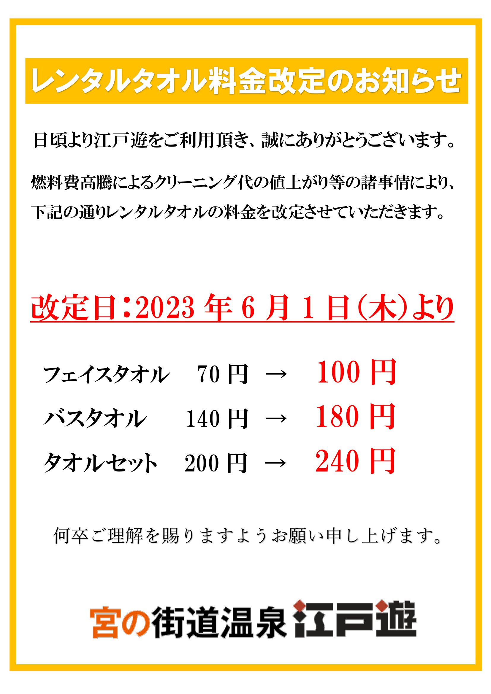 6/1(木)より下記の通りレンタル料を改定させて頂きます。