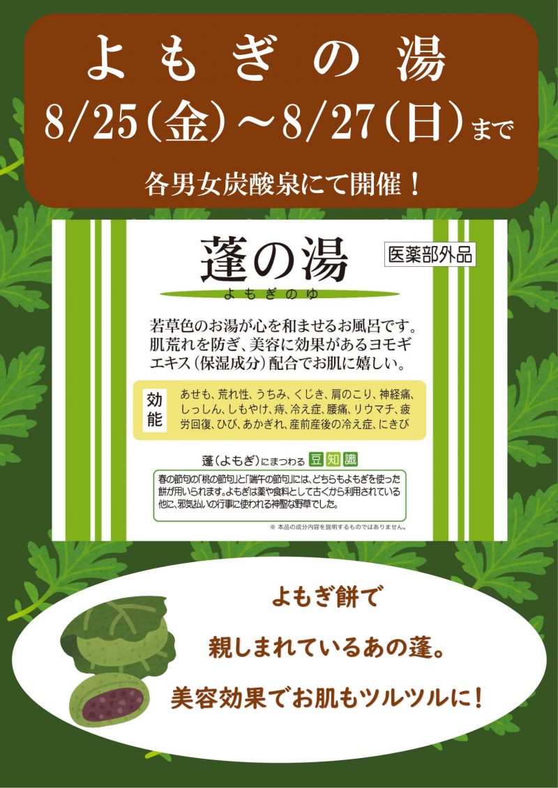 8/25(金)~8/27(日)かわり湯「よもぎの湯」開催♨