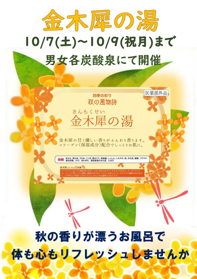 10/7(土)~10/9(月祝)かわり湯「金木犀の香り」開催♨